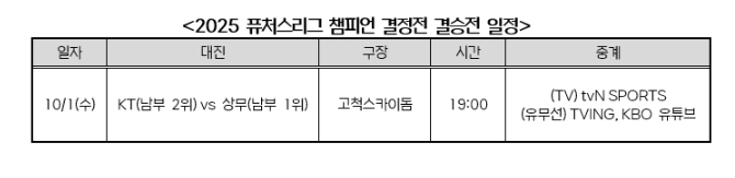 남부리그 2위 KT vs 남부리그 1위 상무 결승전 대진 확정
