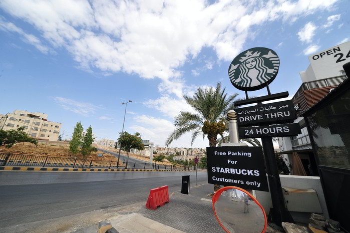 (프레스뉴스)채정병 특파원= 9일(현지시간) 코로나19 감염자가 연일 1천명을 넘고 2천명에 육박하자 요르단 정부는 금-토 48시간 전국 봉쇄령을 발령한 가운데 문닫힌 스타벅스 매장 앞 도로가 비어있다.