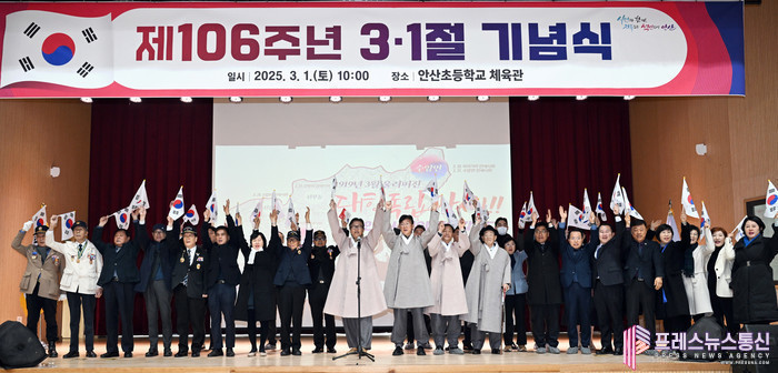 [프레스뉴스] 장현준 기자= 안산시(시장 이민근)는 이민근 안산시장이 안산초등학교(수암동 소재)와 3·1 운동 기념탑에서 각계각층의 시민 400여 명과 함께 제106주년 3.1절 기념행사를 개최했다고 1일 밝혔다.