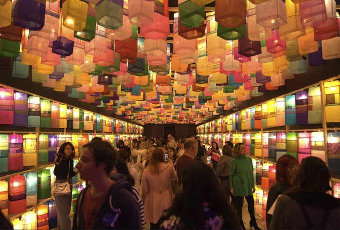 | ▲ 상파울루 한국문화원에 켜진 천여 개의 실크로 만든 소망등 터널(사진=진주시) |