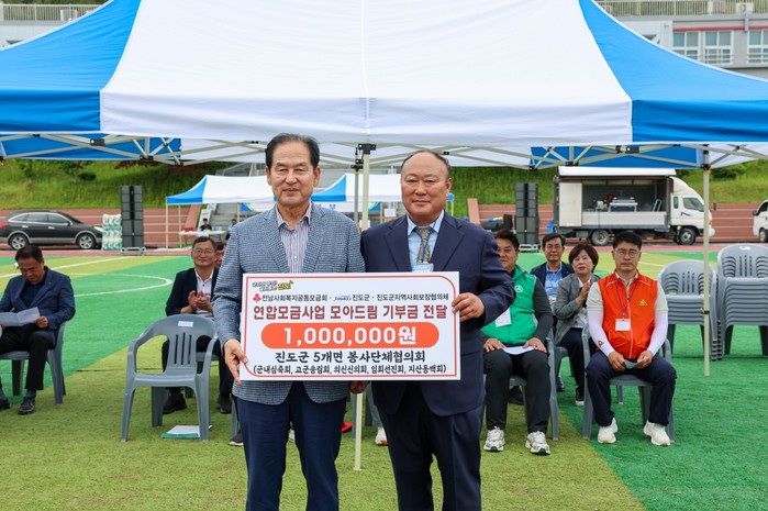[진도=프레스뉴스] 신상균 기자= 진도군을 대표하는 봉사단체인 군내면 심죽회(회장 이광석), 고군면 송림회(회장 김기억), 의신면 신의회(회장 차남진), 임회면 선진회(회장 오상현), 지산면 동백회(회장 배사현)가 관내 위기가구 발굴과 지원을 위한 연합모금 사업 ‘모아드림’에 기부금 100만 원을 기탁 했다.