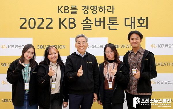 | ▲ KB금융그룹 윤종규 회장이 지난 24일부터 26일까지 KB손해보험 수원 인재니움에서 열린 2022 KB 솔버톤 대회에서 인도네시아팀 참가자들과 기념촬영을 하고 있다.(사진=KB금융그룹) |