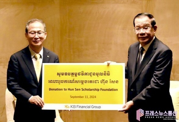 이 날 면담에서 KB금융은 캄보디아 저소득 대학생을 대상으로 장학사업을 실시하는 ‘훈센장학재단’에 기부금도 함께 전달했다. 기부금 전달식에는 훈센 상원의장과 양종희 회장을 비롯하여 서영호 KB금융지주 글로벌부문장, 옴쌈은(Oum Sam Oeun) KB프라삭은행장과 캄보디아 대표단이 참석했다.