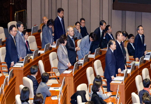 한 총리는 서 의원의 요구를 수용해 단상 옆으로 이동해 허리를 90도 굽히며 공개 사과했다. 그러나 야당 측 의석에서 '다시 사과하라'는 요구가 빗발쳤고, 서 의원은 "다른 국무위원들도 다 일어나서 같이 국민께 백배사죄한다고 하라"고 했다.