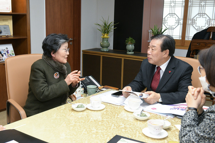 [프레스뉴스] 김교연 기자=최민호 세종시장이 ‘2023년 윤 대통령 설맞이 연하장’에 담긴 글씨체 주인공인 홍죽표 할머니를 17일 집무실로 초대했다.