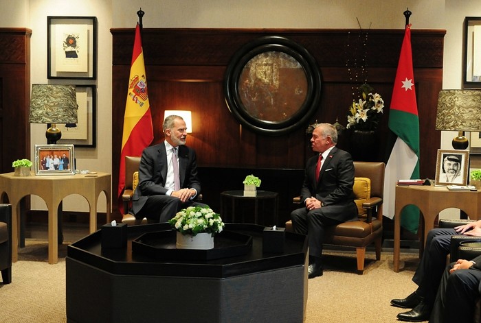 [프레스뉴스] 채정병 특파원=6일(현지시간) 요르단을 공식 방문한 펠리페 6세 스페인 국왕이 압둘라 2세 요르단 국왕과 가자 및 이스라엘-헤즈볼라 전쟁에 관해 회담하고 있다.