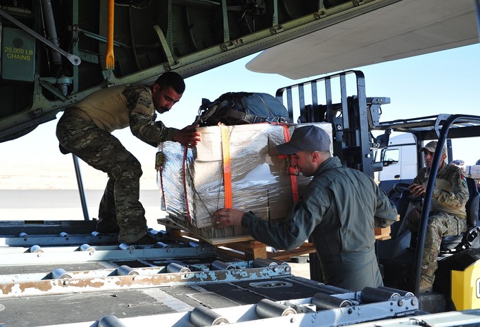 [프레스뉴스] 채정병 특파원= 5일(현지시간) 심각한 기아와 영양실조에 직면한 가자지구 주민들을 위해 요르단군을 비롯한 UAE, 독일, 프랑스 수송기가 육로로 접근이 어려운 가자 중부지역에 분유 등의 생존식량을 싣고 에어드롭(공중투하)을 수행한 가운데 요르단 공군이 C-130 허큘리스 수송기에 구호품을 싣고 있다. 전쟁 이후 지금까지 하늘길을 통한 에어드롭은 총 289회, 305톤에 달하는 구호품이 전달됐다.