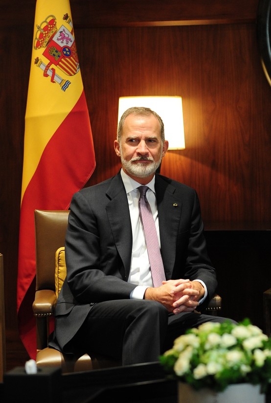 [프레스뉴스] 채정병 특파원=6일(현지시간) 급박한 중동 현안과 스페인-요르단 관계 발전을 위해 요르단을 방문한 펠리페 6세 스페인 국왕이 알 후세이니아 궁전에서 압둘라 2세 요르단 국왕과 회담하고 있다.