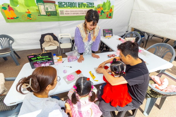 | ▲한 가족이 30일 안양충훈벚꽃축제의 체험부스에서 벚꽃 비누 만들기를 하고 있다.(사진=안양시) |