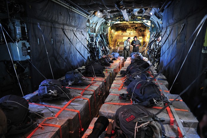 [프레스뉴스] 채정병 특파원= 5일(현지시간) 심각한 기아와 영양실조에 직면한 가자지구 주민들을 위해 요르단군을 비롯한 UAE, 독일, 프랑스 수송기가 육로로 접근이 어려운 가자 중부지역에 분유 등의 생존식량을 싣고 에어드롭(공중투하)을 수행한 가운데 요르단 공군의 C-130 허큘리스 수송기 안에서 최종점검을 마친 구호품들이 투하를 기다리고 있다. 전쟁 이후 지금까지 하늘길을 통한 에어드롭은 총 289회, 305톤에 달하는 구호품이 전달됐다.