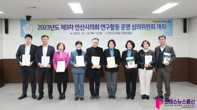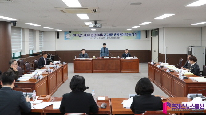 | ▲ 안산시의회 의원연구단체 ‘인구정책 연구모임’과 ‘안산시 조례 정비 연구모임’, ‘다문화를 품은 안산’, ‘안산맞춤 연구소’가 의원연구단체 최종 심사를 통과했다. 사진은 지난 14일 의회 대회의실에서 열린 ‘2023년도 의회 연구활동 운영 심의위원회’중 한 장면(사진=안산시의회) |
