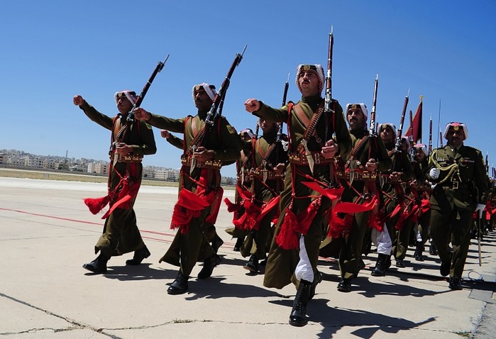 [프레스뉴스] 채정병 특파원=2일(현지시간) 셰이크 무함마드 빈 자이드 아랍에미레이트(UAE) 대통령의 요르단 공식 방문 환영식을 위해 의장대가 이동하고 있다.