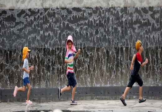 ▲23일 경기 수원시 영통구 광교호수공원 신비한물너미에서 아이들이 무더위를 식히고 있다.(사진= 뉴스1) |