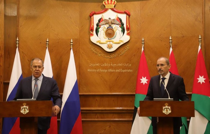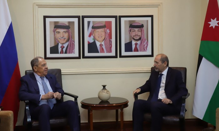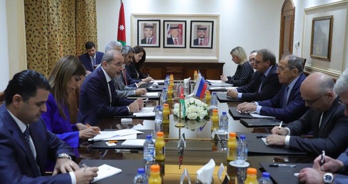 | ▲ 3일(현지시간) 세르게이 라브로프(왼쪽) 러시아 외무장관과 아이만 사파디 요르단 외무장관이 회담을 하고 있다. (사진=요르단 외무부 제공) |