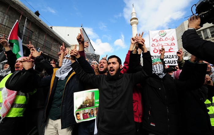 [프레스뉴스] 채정병 특파원=5일(현지시간) 가자지구 팔레스타인 연대행진이 요르단 암만 후세이니 모스크 앞에서 열린 가운데 시민들이 이스라엘을 향해 학살을 중단하라는 구호를 외치며 행진하고 있다.