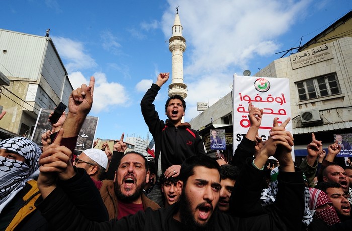 [프레스뉴스] 채정병 특파원=5일(현지시간) 가자지구 팔레스타인 연대행진이 요르단 암만 후세이니 모스크 앞에서 열린 가운데 성난 시민들이 이스라엘의 가자지구 대량학살을 강하게 규탄하고 있다.