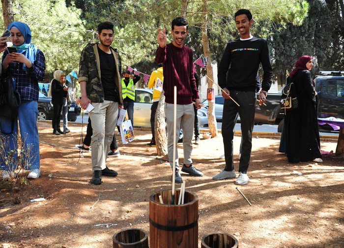 [프레스뉴스] 채정병 특파원=25일(현지시간) 한글의 우수성을 알리고 한국전통문화체험을 겸한 575돌 한글날 기념행사가 요르단 암만세종학당 주최로 요르단 대학교에서 열린 가운데 언어센터 야외체험행사장에서 대학생들이 즐겁게 투호놀이를 하고 있다.