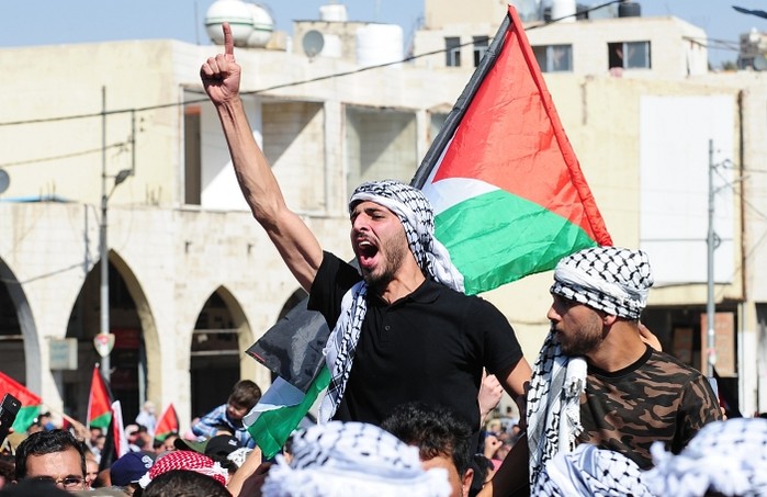 [프레스뉴스] 채정병 특파원=13일(현지시간) 가자지구에 대한 이스라엘의 무차별 공습에 분노한 요르단 시민이 시위대와 함께 이스라엘 규탄 구호를 외치고 있다,