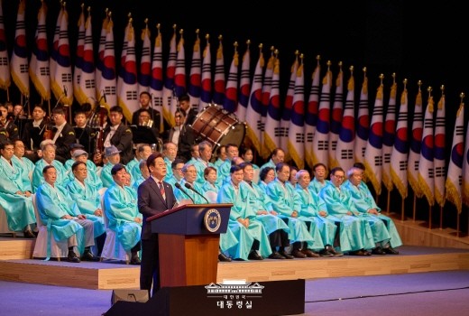 이 대통령은 "한걸음 뒤처지면 고단한 추격자 신세이지만 반걸음 앞서가면 무한한 기회를 누리는 선도자"라면서 "반도체, 인공지능 등 첨단과학 기술을 육성하여 변화에 적극 대응해야 한다. 에너지 고속도로를 비롯한 에너지 전환의 속도를 높여 미래를 앞장서 열어가야 한다"고 말했다.