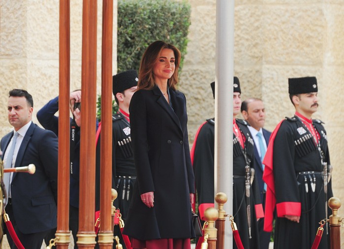 [프레스뉴스] 채정병 특파원=15일(현지시간) 칼 구스타프 16세 스웨덴 국왕 내외가 요르단을 국빈 방문한 가운데 알 후세이니아 궁전 환영식에서 라니아 요르단 왕비가 양국 정상의 의장대 사열을 바라보고 있다.
