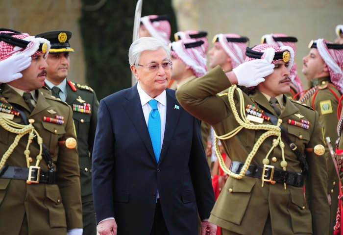 [프레스뉴스] 채정병 특파원=19일(현지시간) 압둘라 2세 요르단 국왕 초청으로 요르단을 공식 방문한 카심 조마르트 토카예프 카자흐스탄 대통령이 알 후세이니아 궁전에서 요르단 왕실 의장대를 사열하고 있다.
