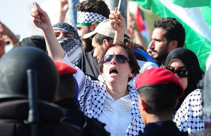 [프레스뉴스] 채정병 특파원=18일(현지시간) 가자지구 민간병원에 대한 폭격으로 중동과 아랍이 분노로 들끓는 가운데 요르단 주재 이스라엘 대사관 인근에서 열린 시위에서 한 여성이 이스라엘을 맹렬히 비난하고 있다.