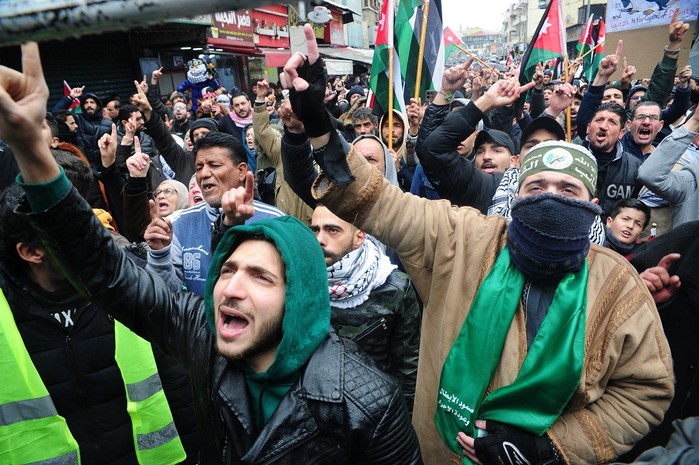 [프레스뉴스] 채정병 특파원=도널드 트럼프 미국 대통령이 발표한 이집트와 요르단으로의 가자주민 이주계획에 대해 아랍권이 들끓고 있는 상황에서 7일(현지시간) 요르단 전역에서 트럼프 계획에 반대하는 시민들이 거리로 나와 미국과 이스라엘을 강력히 규탄하고, 이미 트럼프에게 거부의사를 밝힌 압둘라 2세 요르단 국왕을 지지하는 가운데 수도 암만 다운타운에서 분노한 시민들이 행진을 하고 있다.