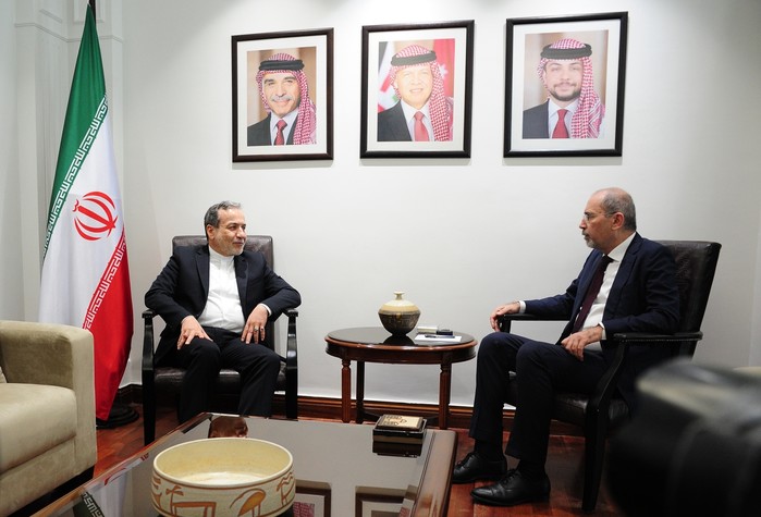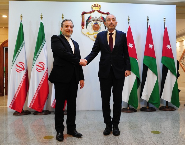16일(현지시간) 압바스 아락치(왼쪽) 이란 외무장관과 아이만 사파디 요르단 외무장관이 회담하고 있다. |