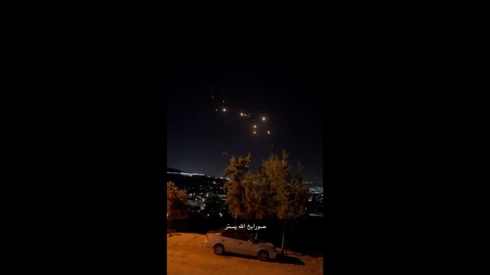 [프레스뉴스] 채정병 특파원=1일(현지시간) 오후 7시경 이란에서 발사된 수백발의 미사일이 요르단 암만 상공을 지나고 있다. (사진=요르단시민 제보영상 캡쳐)