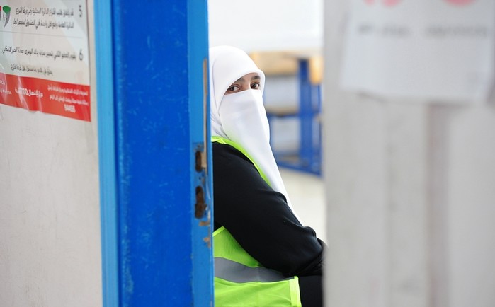 [프레스뉴스] 채정병 특파원=10일(현지시간) 138명의 하원의원을 선출하는 제20대 요르단 국회의원선거가 32.22% 투표율로 마감된 가운데 박까 팔레스타인 난민캠프 내 투표소의 한 여성 참관인이 카메라를 바라보고 있다.