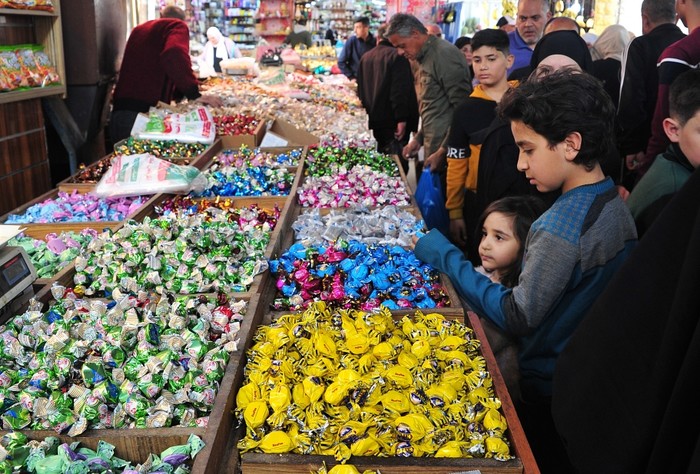[프레스뉴스] 채정병 특파원= 29일(현지시간) 라마단 한달 금식이 끝나고 시작되는 이슬람 최대 명절 이드 알 피뜨르를 앞두고 요르단 암만 다운타운 재래시장에서 아이들이 상점에 진열된 초콜릿 보고 있다. 각 가정들은 명절에 집을 방문하는 손님들을 위해 쿠키나 초콜릿 등을 나누는 전통이 있다.