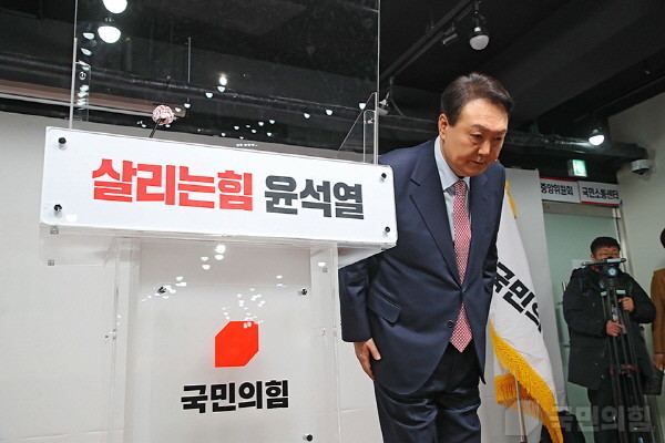 ▲ 5일 오전 서울 여의도 국민의힘 중앙당사에서 윤석열 대선 후보가 선거대책위원회 해산 및 입장 발표 기자회견을 하고 있다. (사진= 국민의힘) |