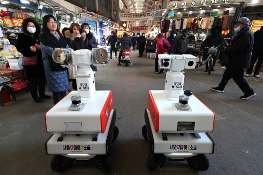 ▲지난 12월 서울 구로구 남구로시장에서 시민들이 화재순찰로봇을 살펴보고 있다. (사진= 뉴스1 |