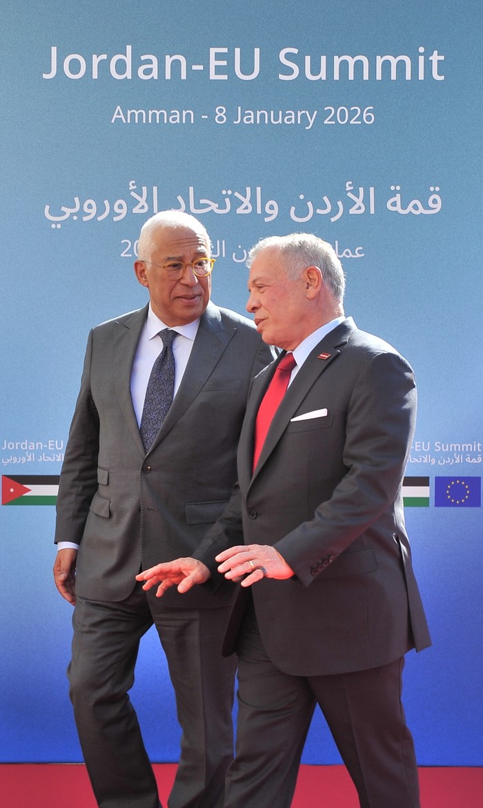 [프레스뉴스] 채정병 특파원=8일(현지시간) 요르단-유럽연합(EU) 정상회의 참석을 위해 요르단을 방문한 안토니우 코스타(왼쪽) 유럽연합 정상회의 상임의장, 압둘라 2세 요르단 국왕이 대화 나누며 회의장으로 이동하고 있다. 이번 정상회의는 2025년 1월에 요르단과 유럽연합이 맺은 전략적, 포괄적 파트너십 협정의 틀 안에서 양자간의 정치, 경제협력을 강화하는 방안에 중점을 두고 진행됐다. 유럽연합은 협정에 따라 2025년부터 2027년까지 요르단에 투자 등 30억 유로의 재정을 지원한다.