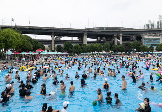 ▲무더운 날씨가 이어지는 가운데 6일 오후 서울 뚝섬 한강공원 수영장이 북적이고 있다.(사진= 뉴스1) |