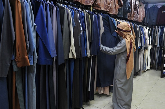 [프레스뉴스] 채정병 특파원= 29일(현지시간) 라마단 한달 금식이 끝나고 시작되는 이슬람 최대 명절 이드 알 피뜨르를 앞두고 요르단 암만 다운타운의 옷가게에서 한 남성이 아랍 전통의상인 데쉬다쉬를 고르고 있다.