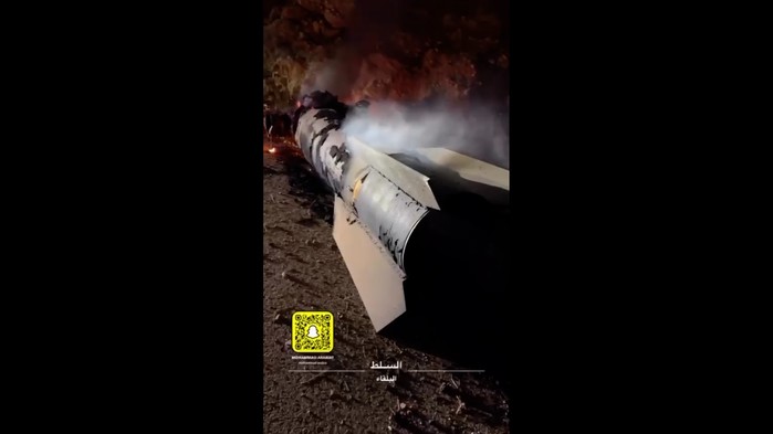[프레스뉴스] 채정병 특파원=1일(현지시간) 오후 7시경 이란에서 발사된 수백발의 미사일 중 하나가 요르단 공군에 의해 요격돼 암만 주택가 인근 공터에 떨어져 있다. (사진=요르단시민 제보영상 캡쳐)
