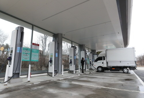 ▲지난 6일 서해안고속도로 화성휴게소(목포방향)에서 전기차들이 충전을 하고 있다. (사진= 뉴스1) |