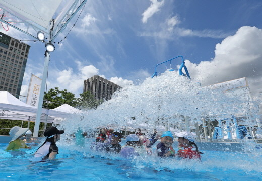 ▲21일 서울 종로구 광화문광장에 마련된 2025 서울썸머비치 물놀이장을 찾은 어린이들이 더위를 식히고 있다.(사진= 뉴스1) |