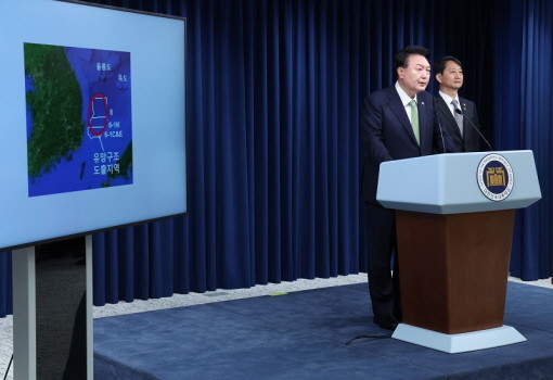 윤석열 대통령은 이날 오전 용산 대통령실에서 첫 국정브리핑을 열고 “포항 영일만 앞바다에서 막대한 양의 석유와 가스가 매장돼 있을 가능성이 높다는 물리 탐사 결과가 나왔다”며 이 같이 말했다.