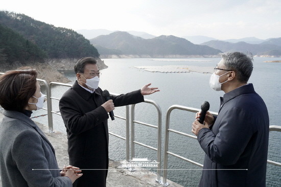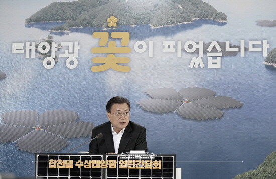 문 대통령은 "탄소중립은 거스를 수 없는 국제규범이 됐고, 탄소중립을 위한 에너지 체계 전환은 미래세대의 생존과 국가 경제의 신성장동력 확보를 위한 시대적 과제"이며 "수상태양광은 가장 주목받고 있는 친환경에너지 기술의 하나"라고 했다.
