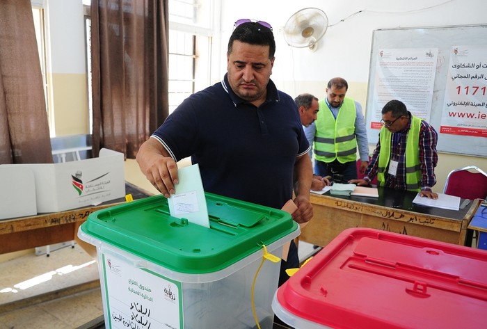 [프레스뉴스] 채정병 특파원=10일(현지시간) 138명의 하원의원을 선출하는 제20대 요르단 국회의원선거가 32.22% 투표율로 마감된 가운데 암만 인근 푸헤이스 지역 투표소에서 한 시민이 투표함에 기표용지를 넣고 있다.