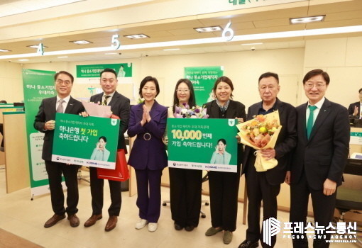 중소벤처기업부는 13일 하나은행과 함께 서울 양천구 하나은행 강서금융센터지점에서 중소기업 재직자 우대 저축공제에 1만 번째로 가입한 중소기업 재직자를 축하하고 격려하는 자리를 마련했다고 밝혔다.