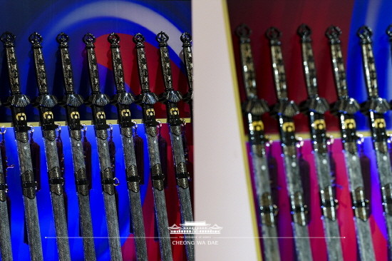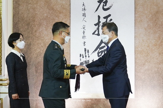 ▲ 준장 진급자 삼정검 수여식.(사진=청와대) |