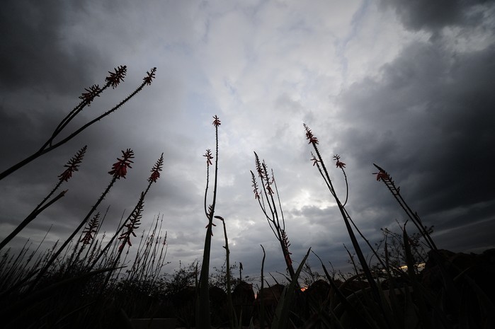 [프레스뉴스] 채정병 특파원=28일(현지시간) 사해 인근에 핀 알로에 꽃대가 하늘 위로 서 있다.