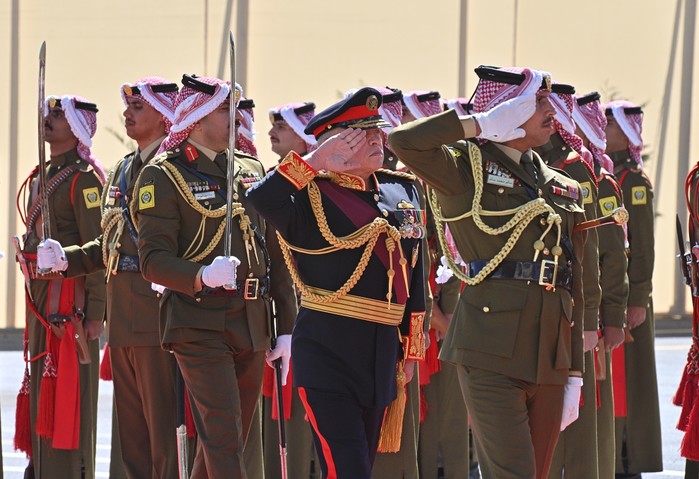 [프레스뉴스] 채정병 특파원=26일(현지시간) 요르단 제20대 의회 2차 정기 회기 개회식이 압둘라 2세 국왕과 정부각료, 군사, 왕실 핵심인사들이 참석해 요르단 의회의사당에서 열린 가운데 압둘라 2세 국왕이 왕실 의장대를 사열하고 있다. 압둘라 2세 국왕은 개회연설에서 "지난 수십년 동안 주변 지역과 세계는 전쟁과 갈등, 경제 위기를 겪어 왔지만 우리는 늘 이겨냈고 앞으로도 국민들과 함께 굳건히 나라를 지켜낼 것" 이라고 강조했다. 더불어 가자지구에 대해서는 형제의 입장에서 계속적인 구호와 의료지원을 이어갈 뜻을 밝혔다.