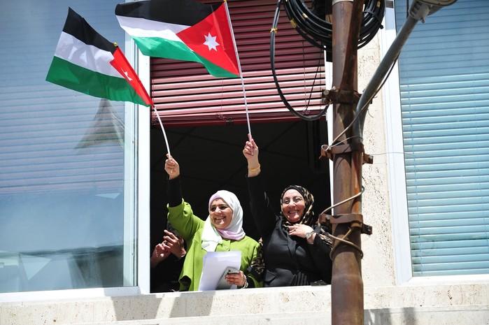 [프레스뉴스] 채정병 특파원=16일(현지시간) 요르단 여성들이 '국기의 날'을 맞아 수도 암만 도심에서 열린 축하 퍼레이드를 지켜보며 국기를 흔들고 있다.