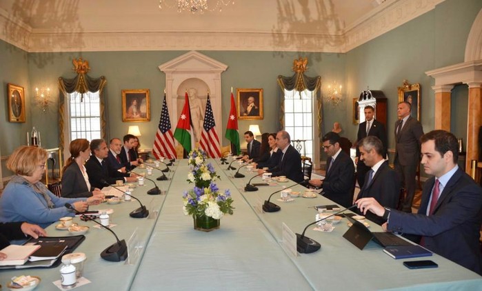 | ▲ 16일(현지시간) 미국 국무부에서 미-요르단 양국 대표들이 회담을 하고 있다. (사진=요르단 외무부 제공) |