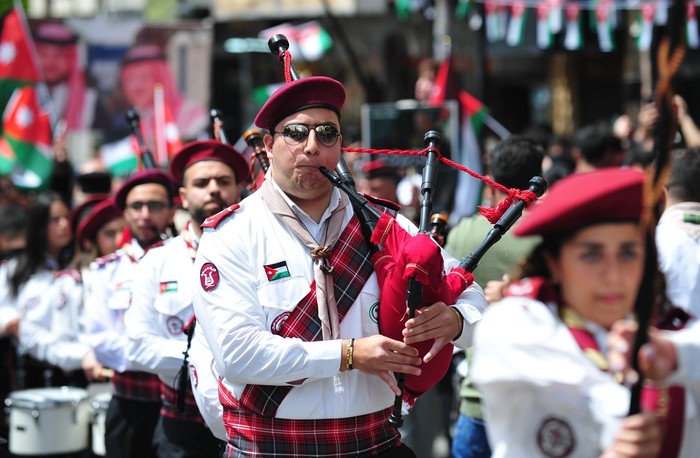 [프레스뉴스] 채정병 특파원=16일(현지시간) 요르단 '국기의 날'을 맞아 수도 암만 도심에서 열린 축하 퍼레이드에서 요르단 가톨릭 스카우트 대원들이 백파이프를 불며 행진하고 있다.
