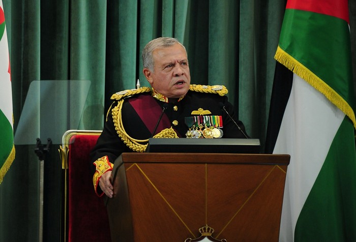 [프레스뉴스] 채정병 특파원=11일(현지시간) 제19대 요르단 의회 3차 정기회기 개회식에 참석한 압둘라 2세 요르단 국왕이 개회 연설을 하고 있다. 국왕은 현재 벌어지고 있는 이-팔 사태와 관련해 “안보와 평화, 안정을 위해서는 정의롭고 포괄적인 평화가 선행되어야 한다.”고 언급 하면서 “두국가 해법에 기초해 팔레스타인이 주권국가가 되는 것이 학살의 악순환을 끝내는 유일한 길”이라고 강조했다.